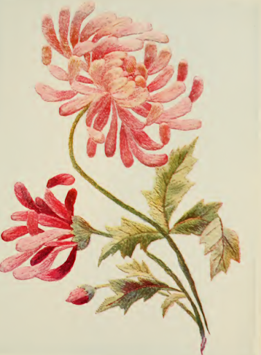 I’d like to recommend an amazing book on needlepainting. It is completely free because it was published in 1907 and is therefore public domain: A treatise on embroidery; with twenty color illustrations from original models by Hemingway & Sons Silk Co. Clicking on any of the images in this post will take you to a larger picture.
