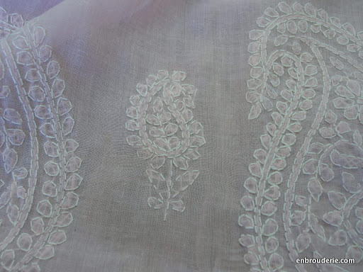 It’s nice to see chikankari in your blog.It’s not done from the back.It’s worked from the front using double back stitch which is called bakhya , the fabric used for this embroidery are voile,organdy in pastel shades.As a person who has been learning Indian embroidery from childhood I ‘d like to share this little info with you.