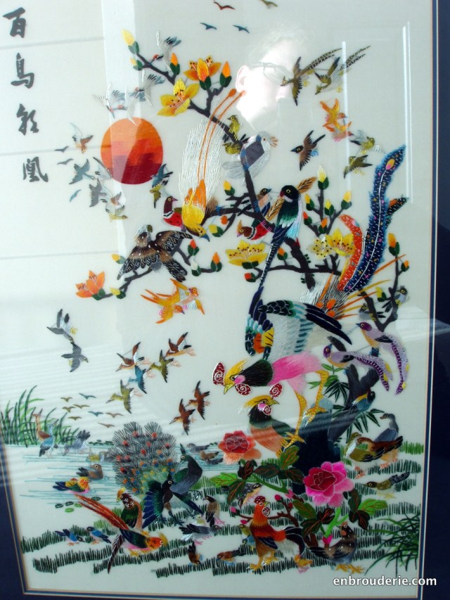 I have something truly amazing to show y’all today. My wonderful wonderful aunt gave me this embroidery souvenir, bought in Singapore in the 1980s. Sorry about the reflections in the glass – couldn’t get a photo without them.