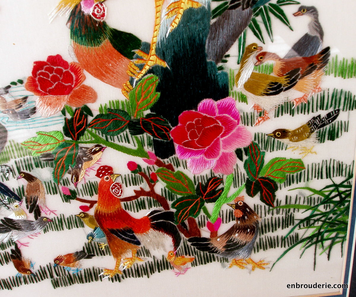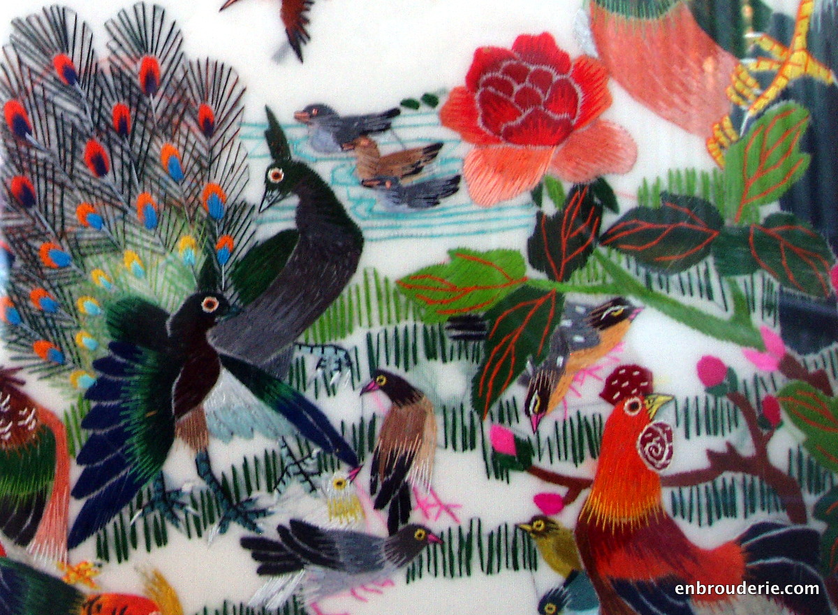 Here is the final installment of photos of the “One Hundred Birds Adore the Phoenix” embroidery (see Part 1, Part 2). Plus I want to tell you a little more about Chinese embroidery.