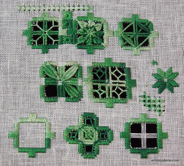 Traditionally, I think you have two sizes of thread, so you can do the lacy parts in the thinner one, but I just used one size in this sampler.