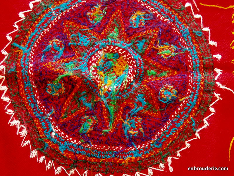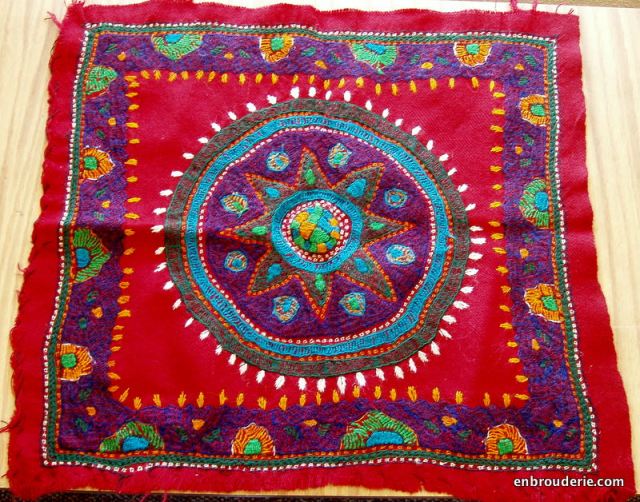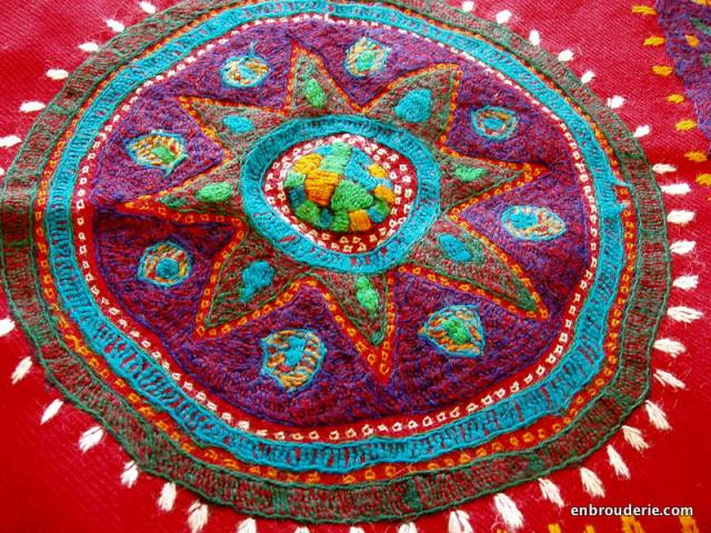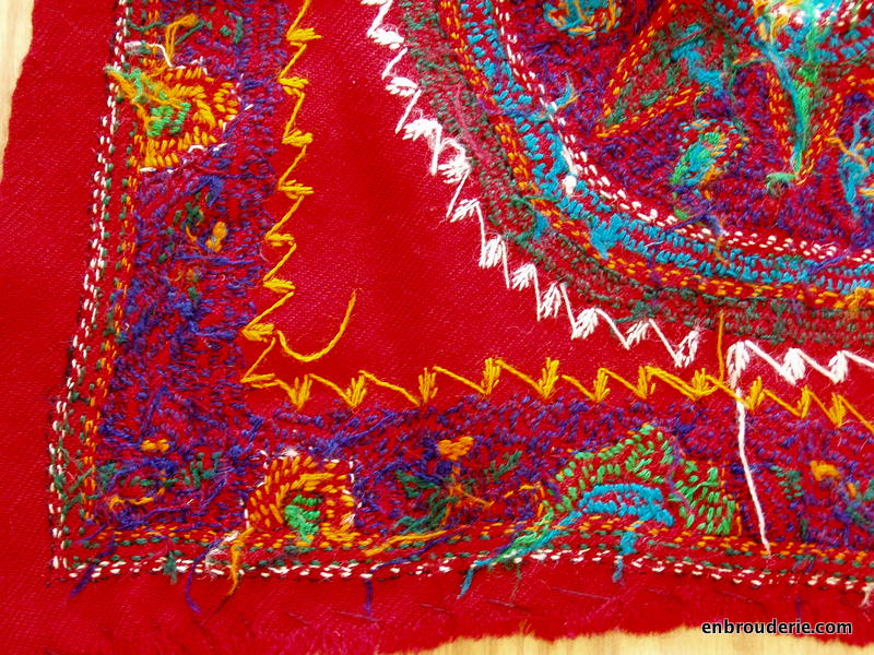 This is one of a special series of posts based on the embroidery collection of Dr. Faegheh Shirazi, from The University of Texas at Austin. Her research is on “textiles, dress, gender identity discourse, and material culture in the Middle East; the meanings of veiling; rituals and rites of passage as they relate to material culture.” Over the years she has collected a number of examples of embroidery from around the world, and has very kindly allowed me to photograph them for my blog.