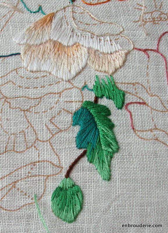 I’m up to two finished petals and two finished leaves. I think the middle leaf is one of my favorite leaves so far. I like it.