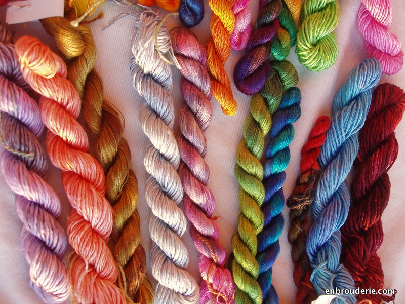 She dyed these silks herself! Aren’t they gorgeous? You know what else is gorgeous? Her artwork!!! She dyes her threads and fabrics herself, and they are just lovely. Her blog is Silk and Colour. Anyway, her first gallery show is opening Friday (April 27!), so you could see them in person! If you are anywhere near West Hobart, Tasmania, Australia, you should go!!! I will be so very jealous of you. Good luck, Marta!
